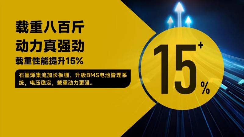石墨烯集流加长板栅和升级BMS电池管理系统,使得超威大力神大大大电池恒定电压输出更稳定,电池载重性能提升15%。动力与续航兼具,载重满满,依旧全程高能!